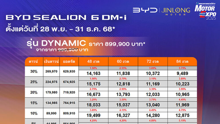 ราคาและตารางผ่อน BYD SEALION 6 DM-i ตั้งแต่วันที่ 28 พย. – 31 ธค. 68